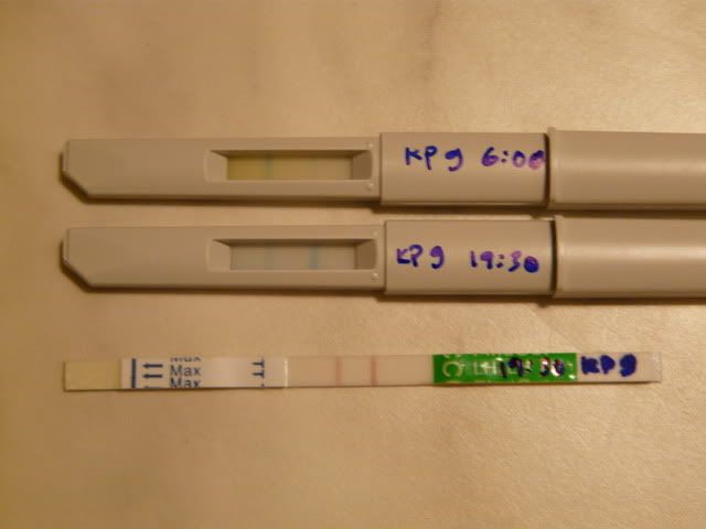 Otin Mymoosaa ajatellen testeistä kuvan. Kävi nimittäin niin, että eilen aamulla personan tikku oli vielä nega mut näytti siltä kuin päivää ennen "peak" (huippua). Joten illalla käytin yhden personan tikun ihan vain ovistestinä ja se näytti selvää plussaa. Hain myös kaupasta nimenomaan sen fertest-paketin, mitä säkin mymoosa hommasit. Ja sillä testillä tuli kans tasavahvat viivat. Tuossa linkissä on kuva noista testeistä. Personan tikuissa lh-viiva oikealla. Alempana fertest ja siinä lh-viiva vasemmalla.