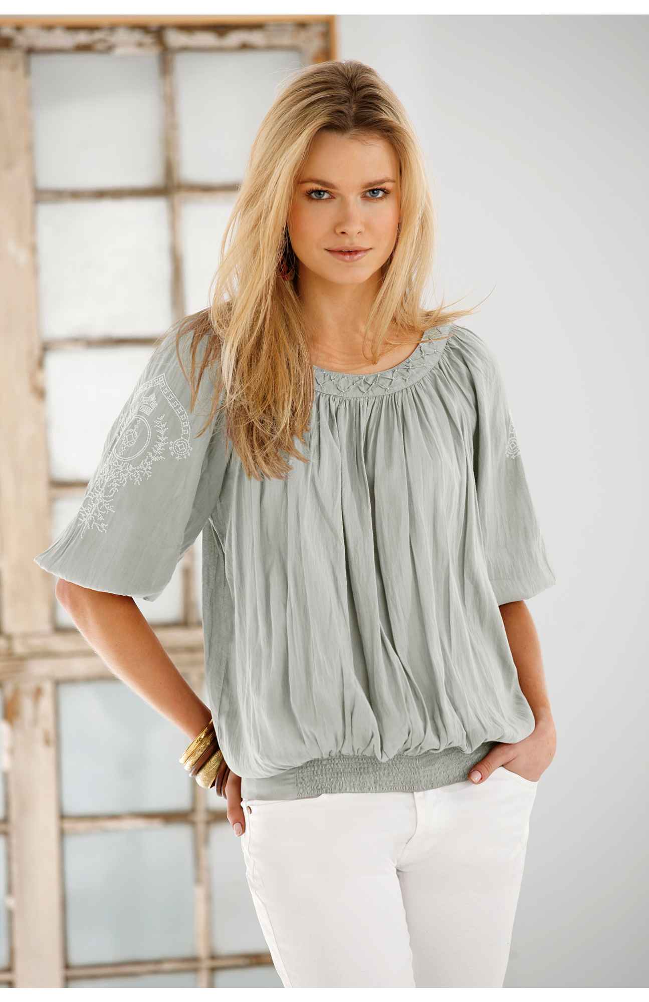 yksi tuttu, joka oli tosi hoikka ja kaita, mutta maha oli pyöreä. Hän käytti rintojen kohdalta istuvia empirelinjaisia yläosia. Koska lantiokin oli kapea, empirelinja ei leventänyt.