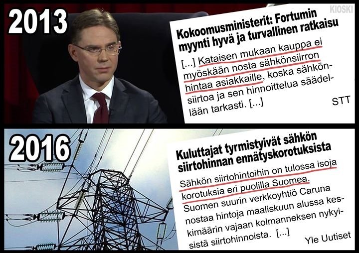 Ei kai kenellekään voi tulla yllätyksenä, että kun kunnallisessa omistuksessa olleet monopoliasemassa toimivat sähköverkot myydään yksityisille firmoille, niin hinnat nousevat taivaisiin. Ei tämä voi kenellekään tulla yllätyksenä.