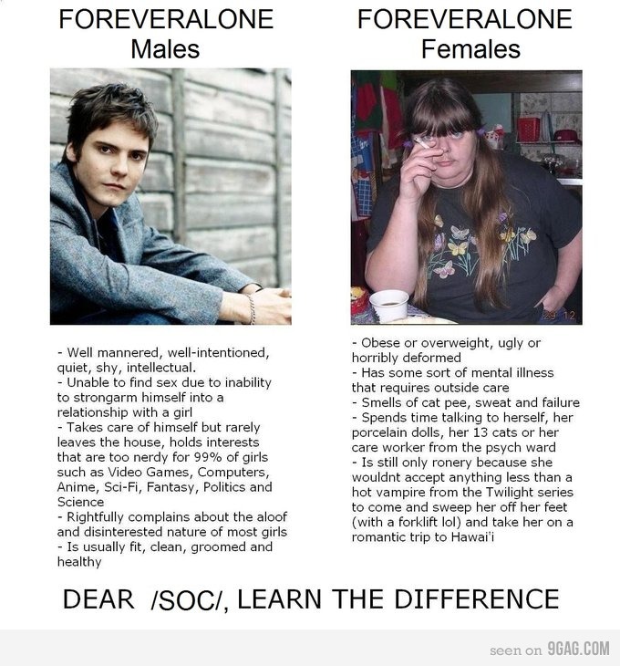 Ei ole, koska kuka tahansa nainen saa miehen/seksiä milloin haluaa (riittää kun menee tyrkylle baariin tms), ja niinpä nainen ei pääse masentumaan seksin tai parisuhteen puutteesta niin kuin monet miehet, eikä myöskään eristymään mihinkään peräkammariin.