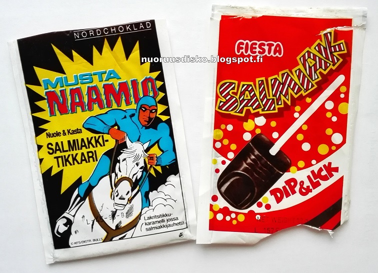 Pussissa oleva salmiakkitikkari, jossa mukana salmiakkijauhoa, johon tikkaria sai kastaa. Tästä samasta oli olemassa myös hedelmäversio, joka värjäsi kielen punaiseksi.