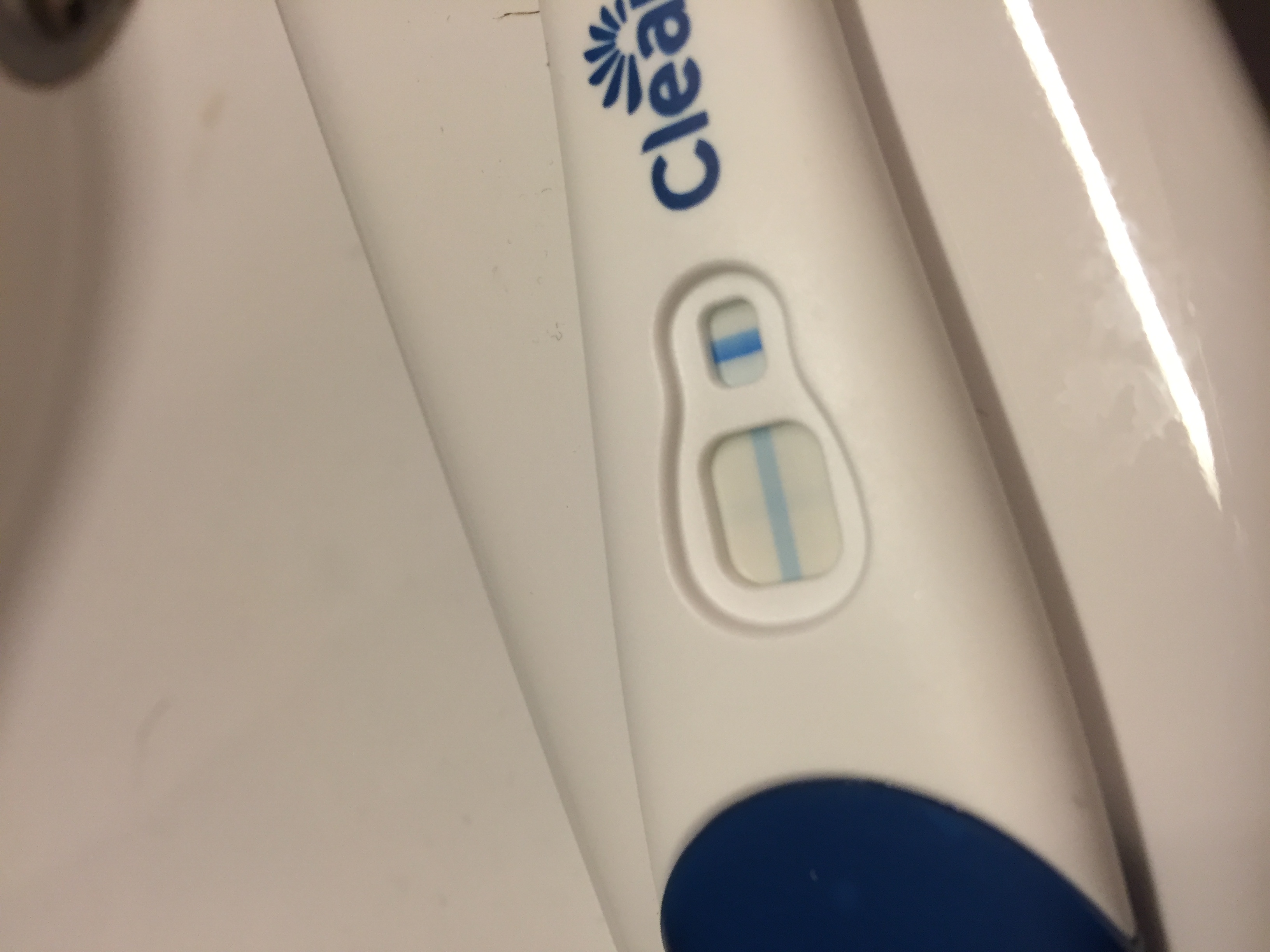 Hei! Lisään alle kuvan tänään tehdystä testistä. Yritystä takana puolivuotta, sisältäen yhden varhaisen keskenmenon (vkolla 7), joten vaavia on toivottukin. Tein sunnuntaina digitestin, joka näytti ei raskaana. Menkkojen piti alkaa maanantaina. No nyt mennään keskiviikossa eikä menkkoja kuulukaan, ja mun kierto on ollu aina päivälleen, ellei jopa kellonajallleen tarkka. Tein uudestaan clearbluen normitestin, ja haalea viiva tuli. Yleensä ei mulla noihin ole tullut mitään viivanpaikkaa edes, että nega on ollu ihan selkeä nega ja haaleaa plussaa ei oo voinu ees kuvitella. Mut nyt kuitenkin tahtoisin varmistusta, ettei oma vauvakuumeinen pää vaan tee omiaan.