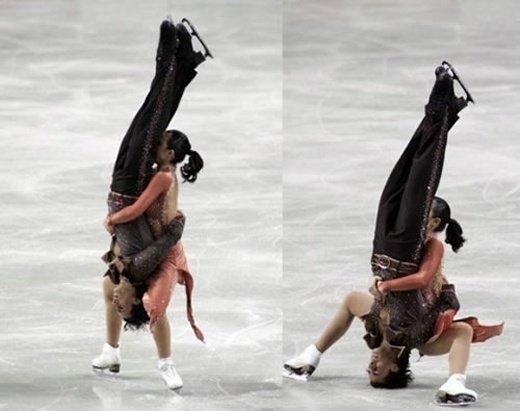 Oma tyttäreni on kaatunut koko luisteluaikanaan kaksi kertaa niin, että pää on kolahtanut jäähän, näissä ei ole käynyt pahasti, eli ei ole tullut lähellekään pää edellä jäähän. Itseäni se mahdollisuus kyllä hirvittää, itse luistelijaa kuulemma ei.
