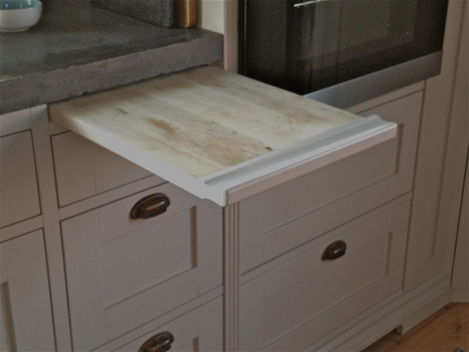 No sattuneesta syystä meillä ei ole laatikostosta esiin vedettävää leikkuulautaa lainkaan.