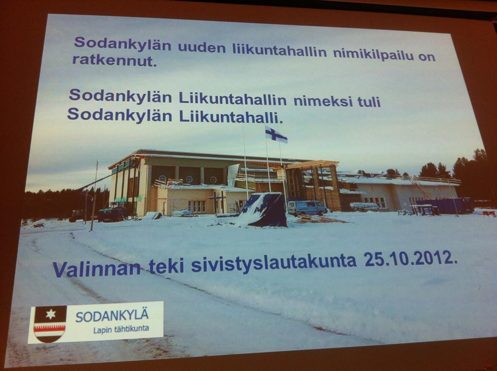 Mun mielestä Sodankylän liikuntahallin nimessä oli ideaa, ehkä voit lainata idean sieltä?