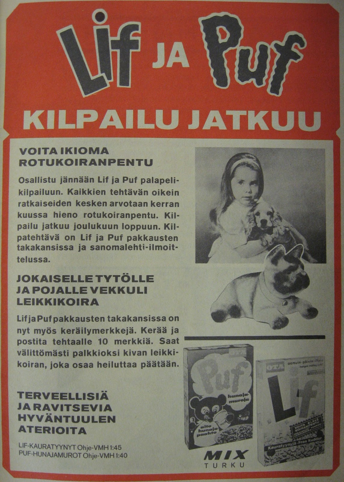 Itse muistan lapsena syöneeni Lif-kauramuroja ja Puf-hunajamuroja. Niitä piti syödä urakalla, että sai muovisia eläinhahmoja.