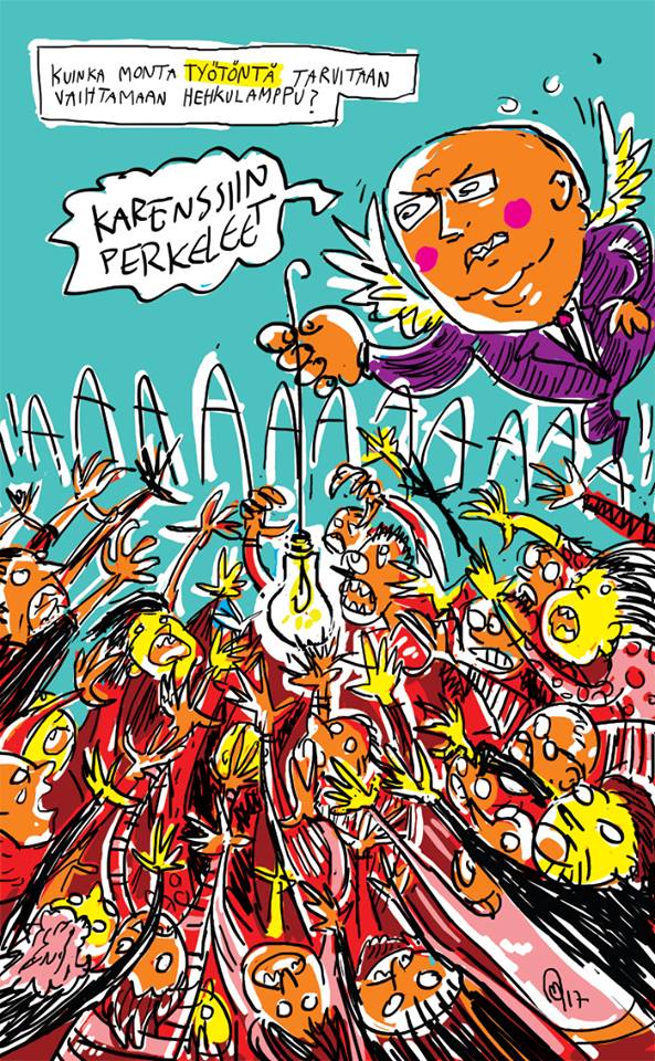 Huvittavaa tuo ammattiliittojen tekopyhyys, ja varsinkin noiden työllisten jotka kävivät meuhkaamassa tuolla senaatintorilla. Työttömien meuhkaamisen kyllä ymmärrän. Tosi paikan tullen ammattiliitot ovat aina työllisten puolella pyyhkien työttömillä lattiaa. Kuinka moni työllisistä olisi oikeasti esim. valmis vaikka vähentämään omaa työaikaansa kuuteen tuntiin päivässä, ja siis täten saamaan vähemmän palkkaa, jotta voitaisiin antaa työtä työttömällä. Juuri niin, arvasit oikein, ei kukaan. Missä se solidaarisuus on kun sitä kaivettaisiin, no ei v...u misään, kun sitä oikeasti ei ole koskaan ikinä ollutkaan.