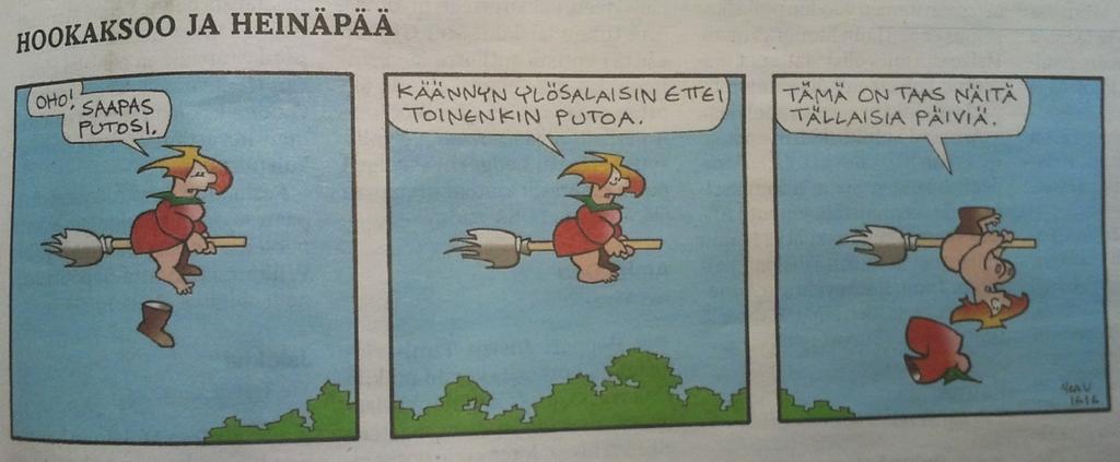 No huumori on kyllä niin vaikea ala että en ehkä uskaltaisi kauheasti yrittää.. tuo nainen joka juuttunut rinnoustaa kiinni liikennemerkkiin on just sellaisia kaukana pois eli far out-vitsejä jotka pitää ottaa hyvin kevyellä otsalla ja hymyilevän valmiina vastaan kun eihän ne nyt välttämättä kerro realistisesta maailmasta yhtikäs mitään vaikka kuvaavatkin hyvin absurdilla ja kaukaisella tavalla todellisuutta mutta oikeasti eivät olekaan mitenkään edes lähellä todellisuutta. Vitsin laji on siis omanlaisensa kokonaan. Niitä usalaisia far out vitsejä sarjakuvissa lukeneena sanoisin että USA:ssa on usein alieneja tai jotain pelottavia syvänmeren haita jossain tavallisissa ihmistä koskevissa tilanteissa tai joskus hyvin harvinaisissa ihmisiä koskevissa tilanteissa. On kokonaan uusi far out-vitsiksi siis tuollainen tilanne jossa vähäpukeinen yliseksikäs nainen on valjastettu tuollaiseen poikkeavaan tilanteeseen. Jos joku on lukenut islantilaista "voiko tälle edes nauraa"-huumoria joka on kanssa hyvin synkkää ja mustan puhuvaa huumoria niin taitaa enemmän olla jo sitä islantilaista synkistelyä tuo.. Uusi vitsilaji on jo siis jossa otettu ainakin noista molemmista omalaatuisista huupmorityypeistä mallia ja tehty ehkäpä jotain uutta. Lisäksi isketty vähäpukeinen nainen joka kai edustaa vanhaa iltalehden viimeistä edellistä sivua jossa oli historiassa erityisen vähänpukeinen nuori nainen keikistelemässä sivu kooltaan kolmasosasivun kokoisessa kuvassa joka tapa on aikaa sitten jo poistettu siitä lehdestä. Tekijä näitä juttuja yhdistävässä sarjakuvassa on hieman mietityttävästi lainaillut näitä mainittuja huumori ja keikistely perinteitä, en oikein osaa sanoa naurattavatko ne minua näin naisena mutta sanotaan etten toisaalta pidä tuota kaikista huonompana yrityksenä tehdä sarjakuvaa. En tiedä kelpaisiko kuitenkaan Hesariin mutta toisaalta kaikille asioille pitäisi pystyä aina nauramaan, että joku pilke vaan kun tulis sopivasti silmään niin ehkä se voisi tietyssä stressittömässä päivässä nostaa pienen hörähdyksen..? vaikka jos ajattelisi että jos itse kävelisi joskus noin avonaisessa asussa niin ehkä sitä juuttuisi ainakin johonkin mieheen kiinni heh heh jollei nyt ihan liikennemerkkiin..?