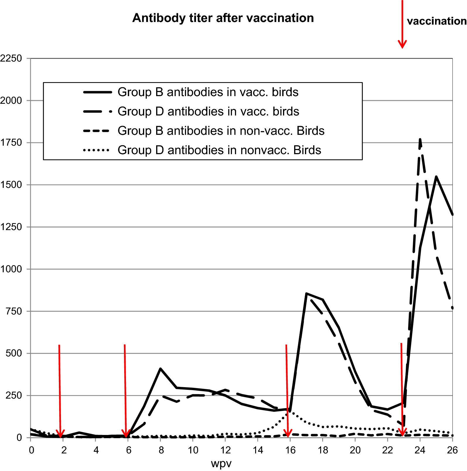 Vajukki on hyvä vaan, ja katsoo kuvaa vasta-aineiden määrästä, jossa näkyy miten 4 rokotteen antaminen peräkkäin niihin vaikuttaa: