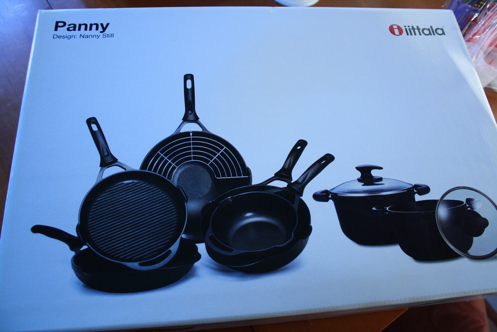 Nanny pannu eli Arabian valmistama Nanny Stillin suunnittelema paistinpannu. Jykevä, tukiotin kahvaa vastapäätä, teflon-pinnoitettu, sopivan korkeat reunat. Ihan huippuhyvä tuote, mulla ehti kaksi niitä olla, kolmatta kun menin ostamaan, kerrottiin ettei niitä enää valmisteta.