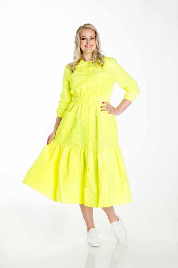 Ei tuo 182-senttinen mikään ylipainoinen ole, mekko vaan on hänelle epäpukevan mallinen.