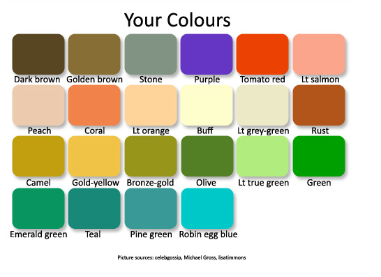 Minulle sopii myös vaaleansininen, mutta inhoan pastellivärejä enkä ole niihin palannut sitten nuoruuden vuosien. Kovin vaaleat värit tekevät yleensä valjunnäköiseksi Muita ihoa vasten hyvältä näyttäviä värejä on mm. ruosteenruskea tai koralli ja jotkut vihreät (tumma oliivi, metsänvihreä). Parhaimmalta näyttää kun yhdistän mustaan asuun värikkäämpiä asusteita.
