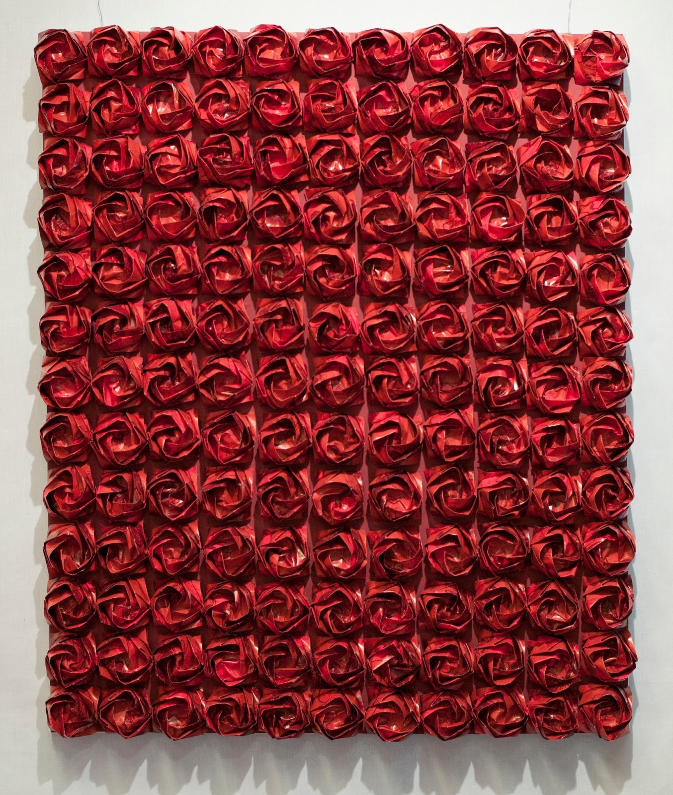 alkuperäinen on sirkka huttusen origamitaideteos ja koska tiedän tyttäreni taitavan origamitaittelun, pyysin häneltä jotain vastaavaa.