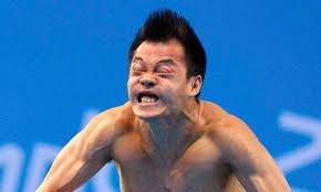 Pää takakenossa, kasvot punaisena, puree hammasta naama irvessä, kaulasta jänteet pinnassa ja korahtelee voimakkaiden sisäänhenkäysten välillä. Joskus meinaa oma pokka pettää... ;-)