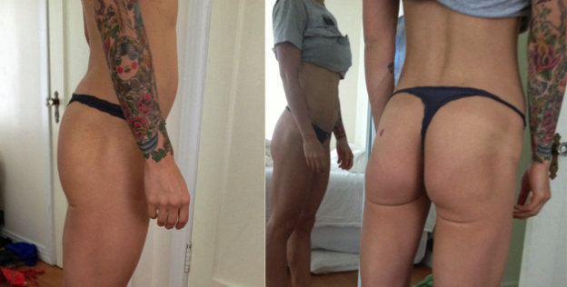 Mutta on mielestäni ominaisuus, vähän miesmäinen takapuoli, jolloin myös ylimääräiset kilot kertyvät omenavatsaksi, jalat pysyvät hoikkina.