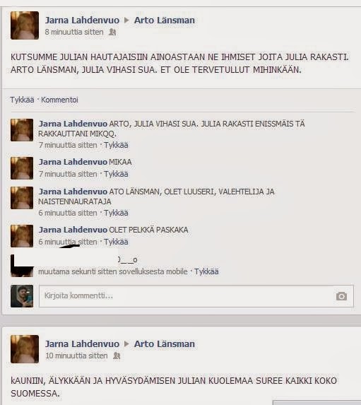 Tuntuu ihan kamalalta Janitan läheisten puolesta! Tämä kyseisellä Jarnalla on ainakin paha huumeongelma, sen tiedän. Hakisi apua eikä tekisi jotain näin loukkaavaa!