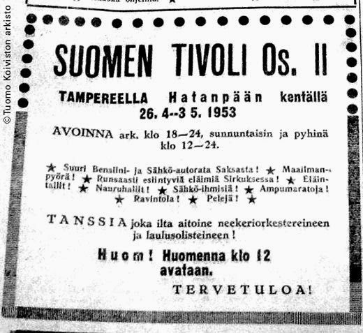 Ainakaan lehti-ilmoituksessa ei ollut mainittu mitään nimiä. Mahtoiko mitään esitteitä olla edes olemassa.
