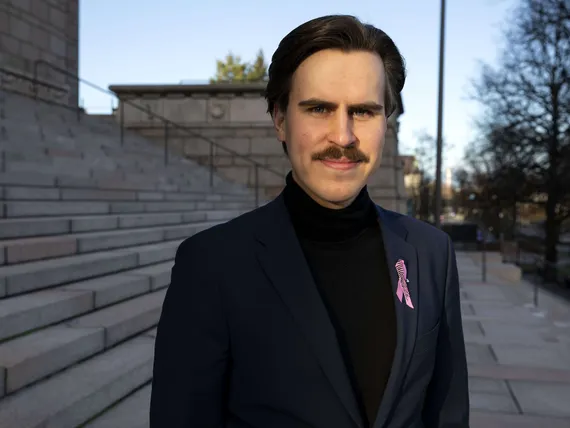 Näin juuri. Mäkynen on kuitenkin ollut viestintätoimistossa töissä, joten vaikea uskoa, etteivät viikset ja muu olemus olisi suunnittelun tulosta. Kukaan muu nuorempi politiikko ei näytä tuolta, joten jää nimenomaan mieleen.