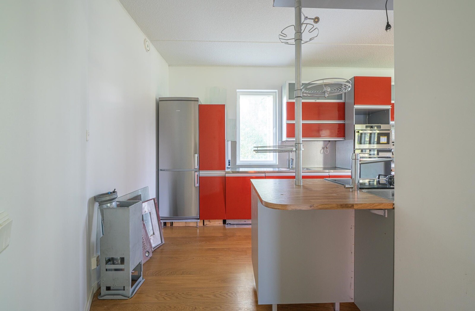 ja vertaa ikkunan leveyttä ja matkaa keittiön hanasta uuniin tässä kuvassa