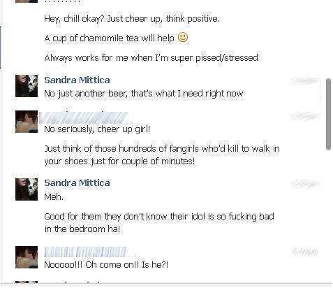 tuosta sandran kirjottelusta että v on huono sängyssä, en ole itse asiassa muunlaista kuin huonoa arviota kuullut/lukenut koskaan keltään muultakaan, tarkotan nyt esim.HIM:in alkuaikojen lyhytaikasempia heiloja. Täälläkin on näissä ketä julkkista olet pannut-ketjuissa ollut tuosta juttua...todenperäsyydestähän ei toki tiedä.