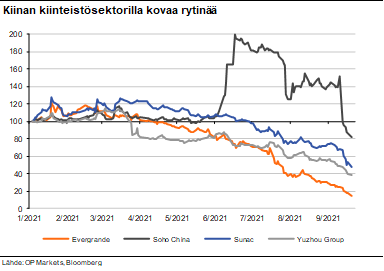 Pörssiromahdus alkamassa Kiinasta: Syynä on kiinalaisen kiinteistöjätin Evergranden maksuvaikeudet, jotka herättävät maailmanlaajuisesti huo...