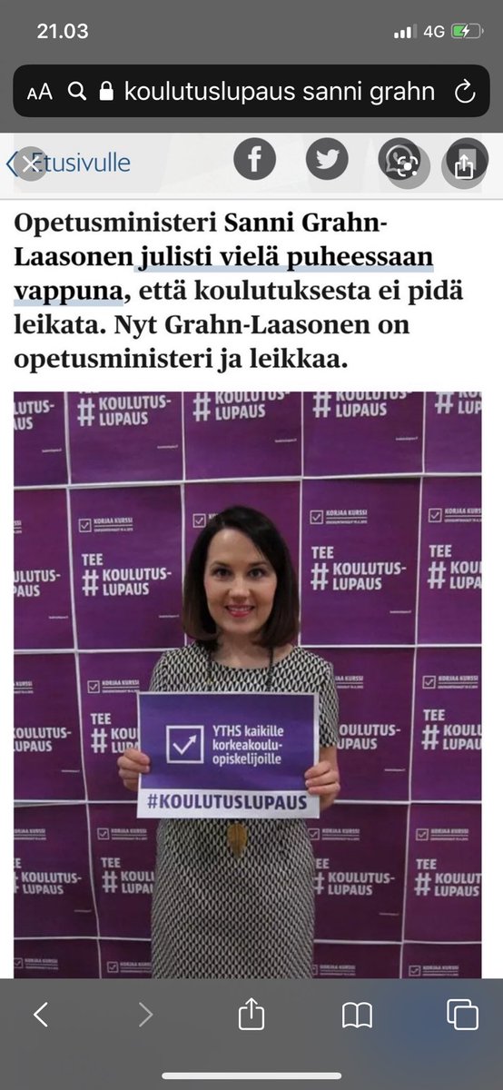 Sanni Grahn-Laasonen: Koulutuksesta EI leikata!