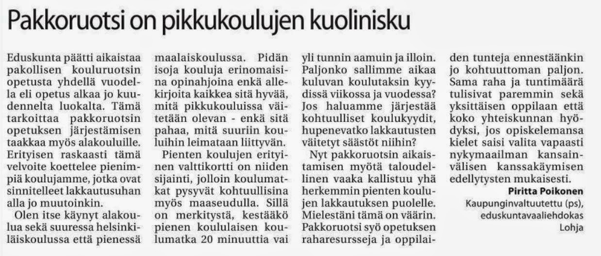 "Pakkoruotsi on pikkukoulujen kuolinisku"