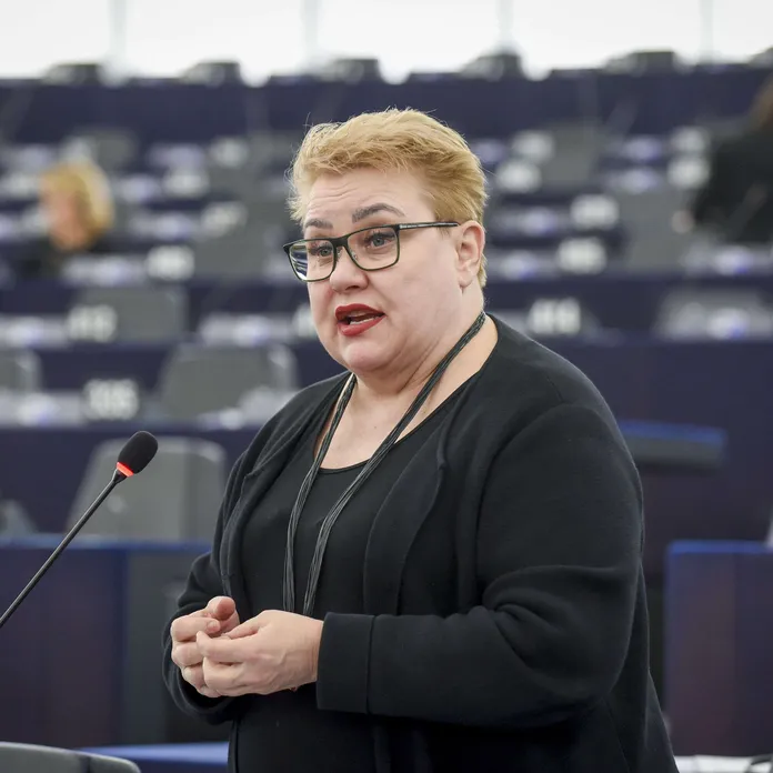Sirpa on vaalimainoksissa ihan eri näköinen. Kuva 2018 eurovaaleista.