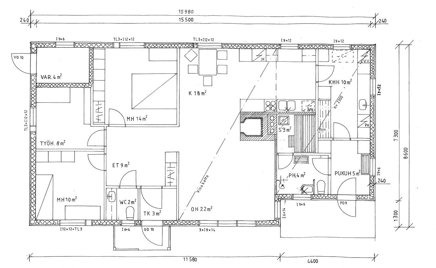 Mutta pohjana tuo on aika haasteellinen, pari metriä seinää ulommaksi ja suunnitelma uusiksi?