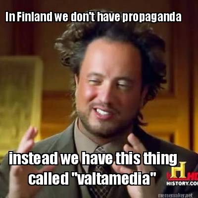 Virallisen totuuden mukaan suomessa ei ole propagandaa, on vain virallisen totuuden julkituontia. Lisäksi sananvapaus voi todella hyvin koska kuka tahansa voi julkisesti kannattaa virallista totuutta ilman pelkoa rangaistuksesta.