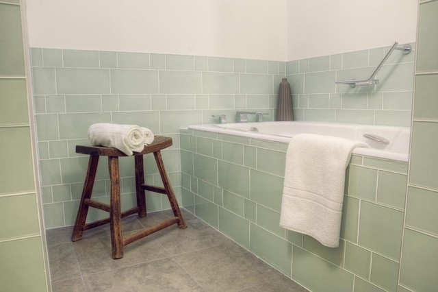 Asutteko asunnossa ikuisesti.vai pitääkö ajatella hälleenmyyntiarvoa? Vihreät laatat karkoittavat ostajaehdokkaat ja voit kyllästyä niihin itsekin. Neutraali tausta ja sitten vihreät pyyhkeet, saippua- ym. pullot ja purnukat, viherkasvi tms. Pidä yleisilme raikkaana ja laatat ja saumaukset helposti puhdistettavina. Esim. hiekanvaskea lattia, valkoiset laatat ja mosaiikki, jossa molempia. Tai harmaa-valkoiset.