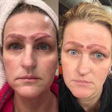 En ymmärrä noita paksuja tussikulmakarvojakaan. Monesti nekin microbleidataan eri tasolle naamaa kuten tuossa ekassa! Sama mesta tehnyt kulmat ja huulet?