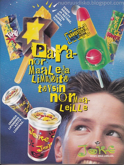 Joke oli muutenkin aika hallitseva jäätelömerkki yhdessä vaiheessa. Muistaakseni lopettivat nuo minun lempparimehujäät ja alkoivat sitten tehdä tämän tyyppisiä jäätelöitä