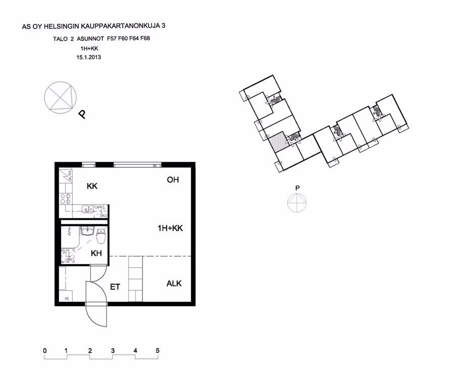 Keittokomeroon pieni ruokapöytä, alkoviin sänky, kylpyhuoneen seinälle TV-taso, pitkälle seinälle sohva, työpöytä vaikka ikkunaseinälle jne.