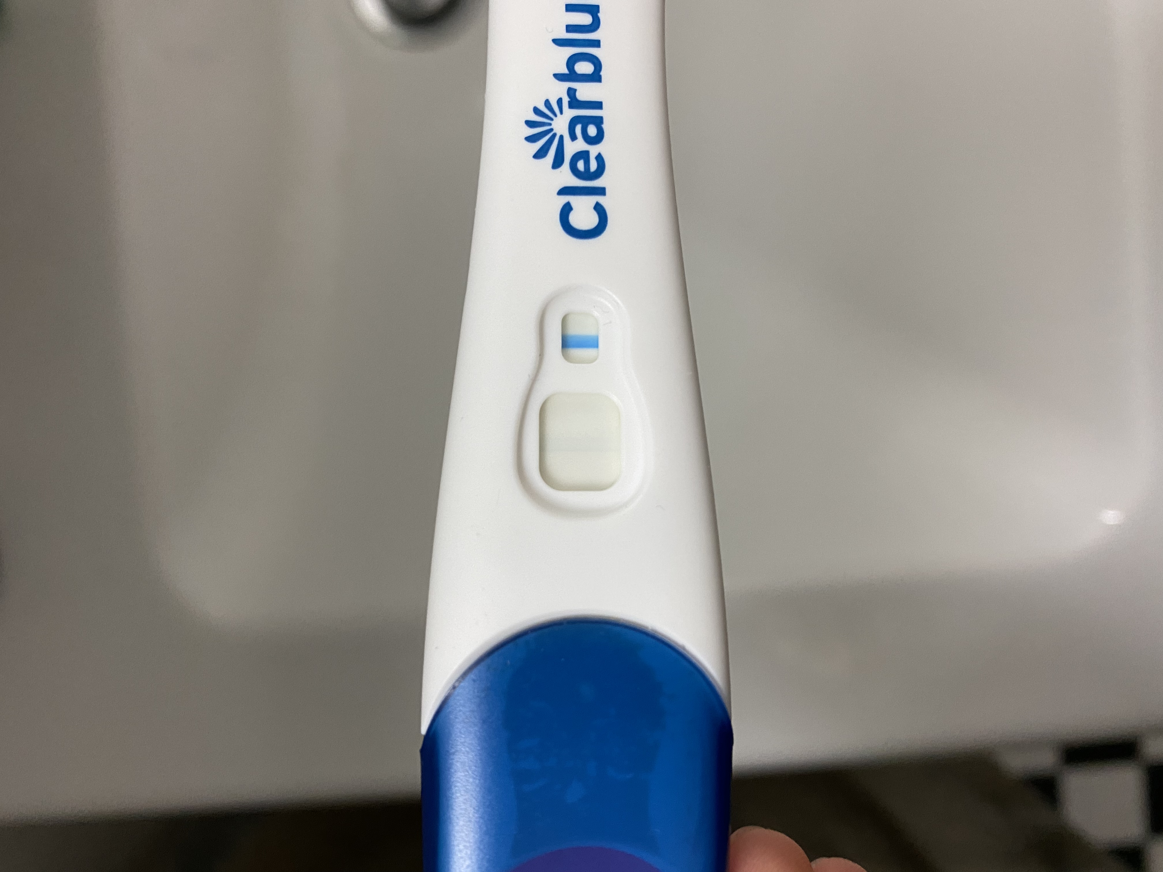 Näihin clearbluen testeihin ei ole luottamista, ellei tulos ole aivan selkeä. Tässä oma testitulos vuodenvaiheessa, ja menkat alkoi muutama päivä myöhemmin. Lisäksi lähes kaikkiin tekemiini CB testeihin on aina tullut haamu, ja en ole ollut raskaana.