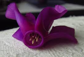 Ei ollu mun toisella konneella katellesa sama tumma violetti syklaamisa ku toisella konneella katellesa. Oli palijo vaaliampi. Mulla ei oo koskaan ollu sita sisalla kukkana. Ossaankohan sita hoitaa... S