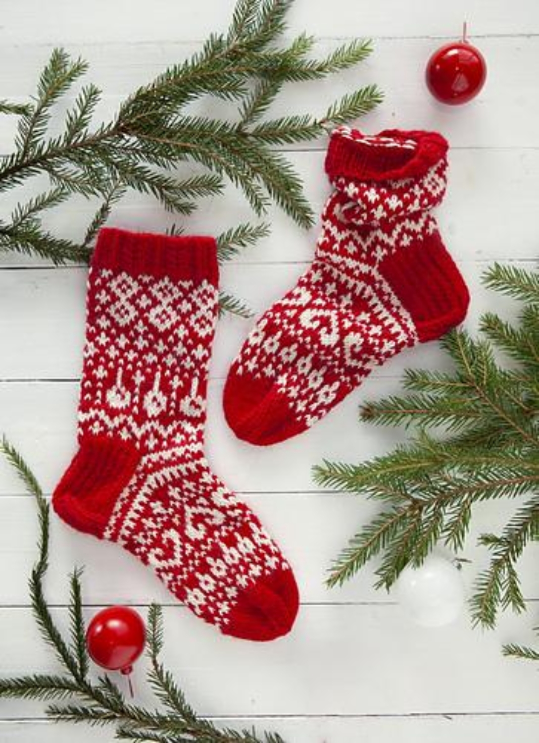 Mie alotin taas yhet joulusukat, ko näin netis nii nätin mallin. Muuttelin hiukan. Tosi kivan näköset tullee.