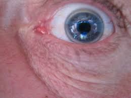 TV ohjelmissa näkkyy silmät paremmi, samoin ihon pinta. Muute en oo silmii tarkkailt. Jotkut vanhemmat ihmiset näyttäät nuorekkailta, mut ku silmämeikkii käytetää nii mahottomast ja lisäks valtavat tekoripset liimataa silmii ympärille. Mite korkia kolesterolin tulee olla, et rinkulat ilmestyyt? Oon nähnt ihmisillä poskii päi alaluomesta vaaleita kohoumia, iha ku oisiit pienii jyviä. Niillä jyvillä on jotakii tekemistä korkean kolesterolin kanssa. Miehen silmät käin tarkastamassa, hänel on siniset silmät, mut ei olt rinkuloita. Kolesteroliarvot ovat nyt kohtuulliset.