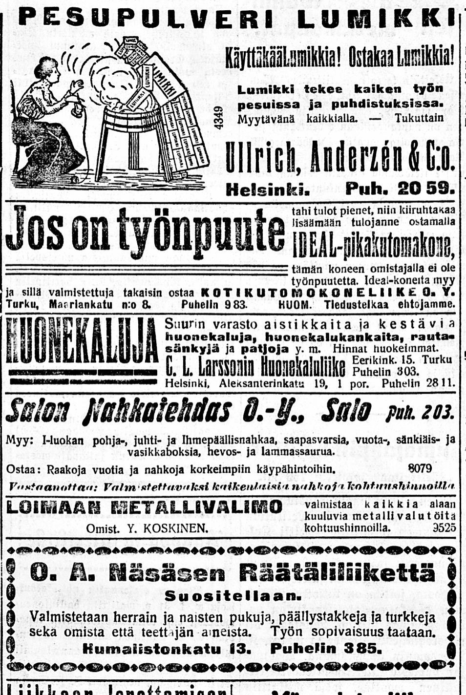 Lumikki pyykinpesuaine oli jo vuonna 1914.