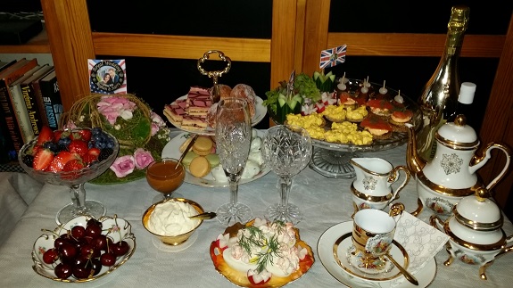 Muutamia kolmioleipiä, skonssit ja ehkä jotain muuta pientä naposteltavaa, iltapäivällä sitten perinteinen Sunday roast.