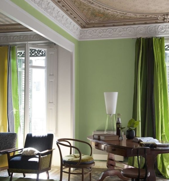 Antaisitteko vinkkejä minkä väriset verhot ja matto sopisivat huoneeseen jonka seinät on suunnilleen tämän väriset https://www.luxurypaints.co.uk/cdn/shop/products/green-melon-no1021_180…