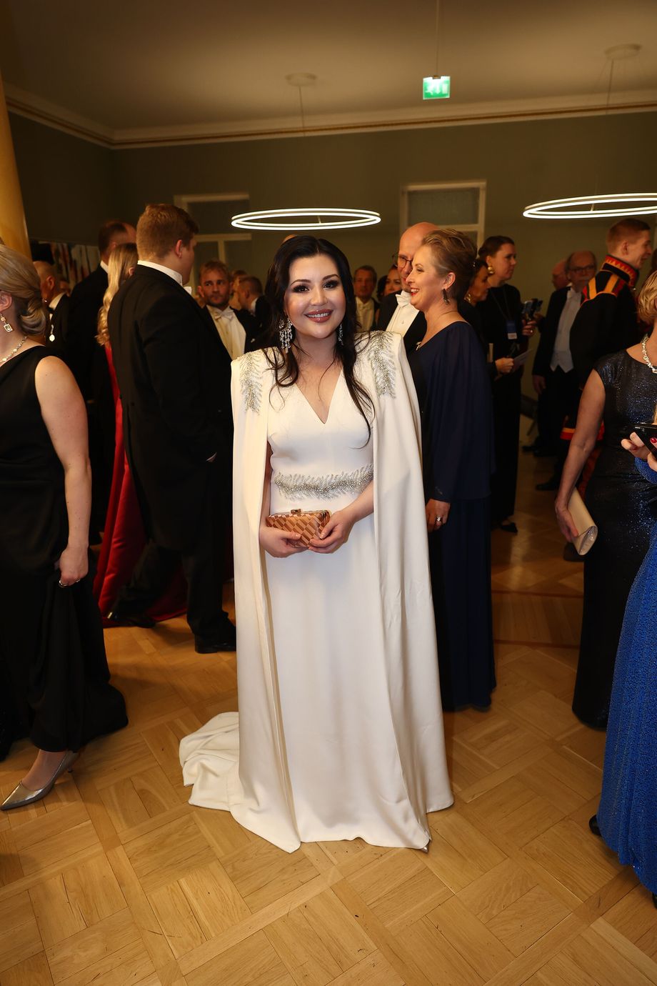 Ainakin Diandrallahan oli aika neutraali valkoinen Anne-Mari Pahkalan suunnittelema asu linnan juhlissa.