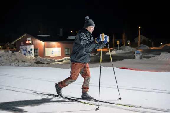 Tyylikkäämpi Alex on hiihtopuvussaankin kuin pappa-Pekka.