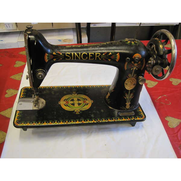 Eli vanha metallinen ompelukone keskellä metsää.
