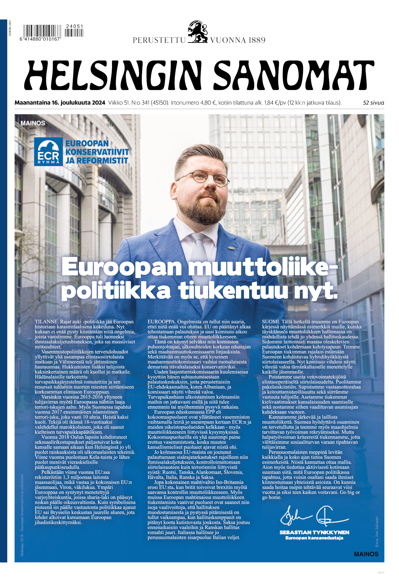 Äärioikeistolainen moskovan myyrä ostaa 56420 euroa maksavan mainoksen Hesarin erusivulta, missä saa vapaasti haukkua vihervasemmistoa ja öyhöttää muukalaisvastaisuuttaan.