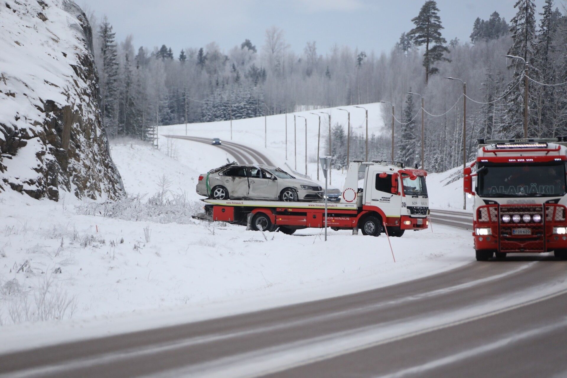 Auto ei varsin paljon ollut vahingoittunut hinausauton lavalle nostetuissa kuvissa.