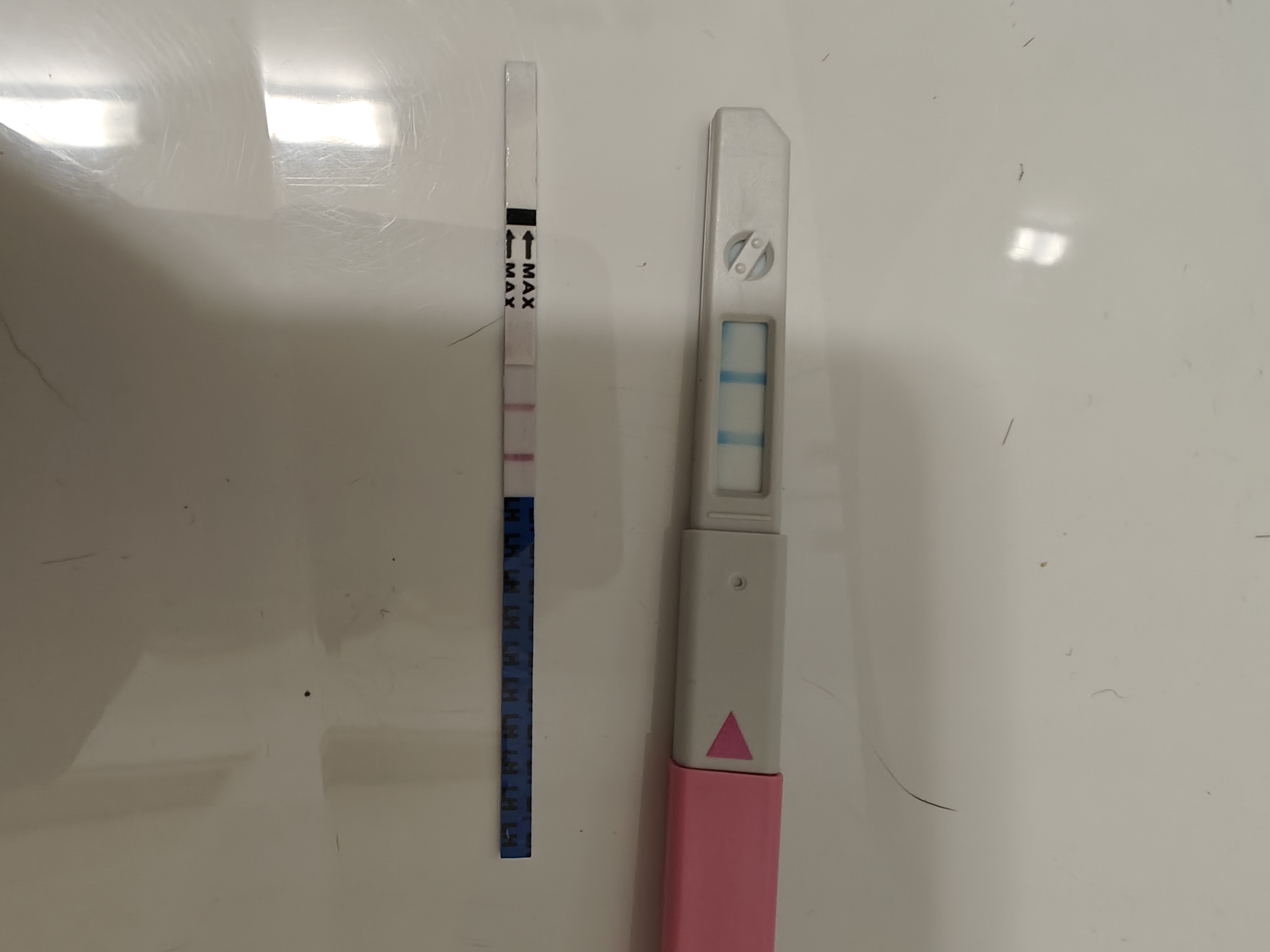 Tämän päivän liuskatesti ja clearblue pinkki, clearblue näytti tyhjää ympyrää.