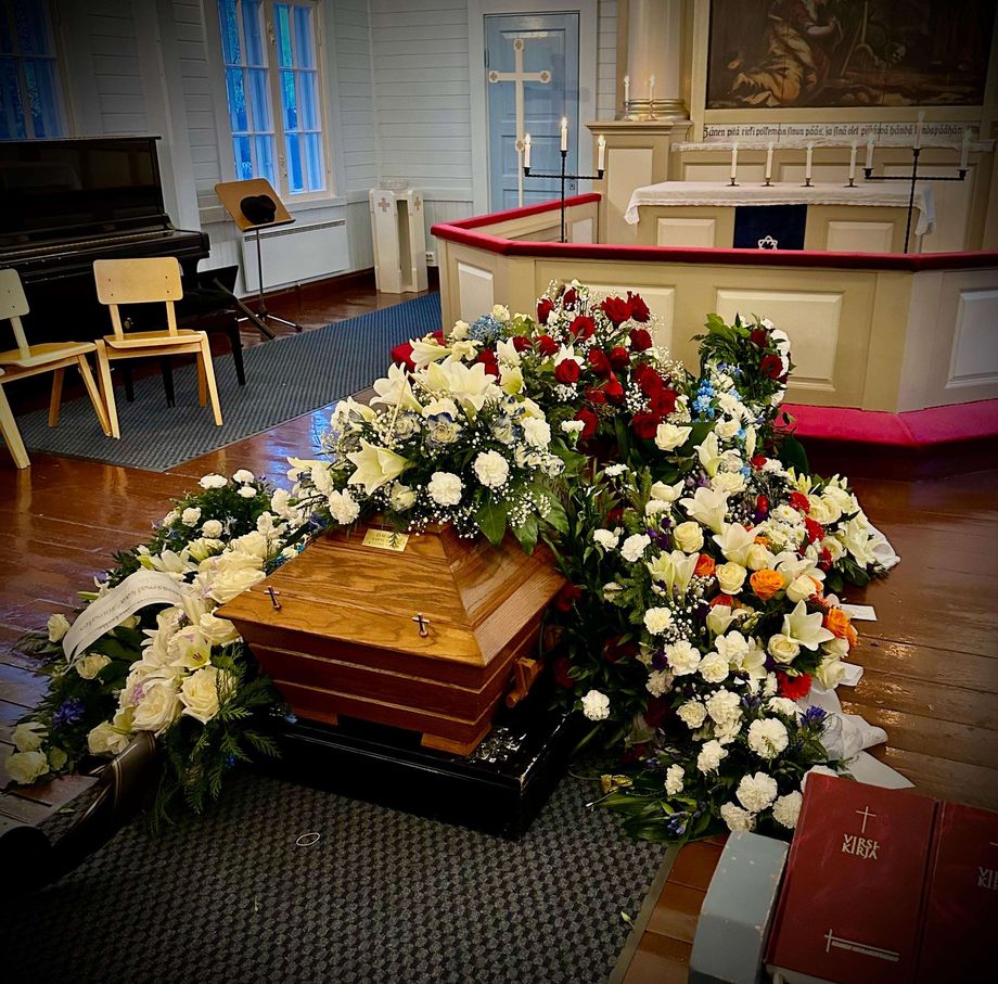Iltapulun jutussa kuva arkusta kirkossa ja nimikyltissä lukee Hagert.