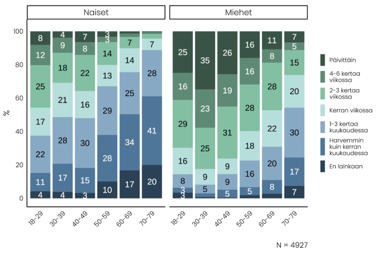 Normaalia/epänormaalia, mitä väliä? 40-49-vuotiaista naisista 64 % kokee seksuaalista halua korkeintaan kerran viikossa, samanikäisistä miehistä vain 23 % kokee seksuaalista halua yhtä harvoin. Suurin osa miehistä haluaa seksiä paljon useammin kuin suurin osa naisista. Tässä on suunnilleen yhtä suuri ero sukupuolten välillä kuin fyysisen voiman suhteen.