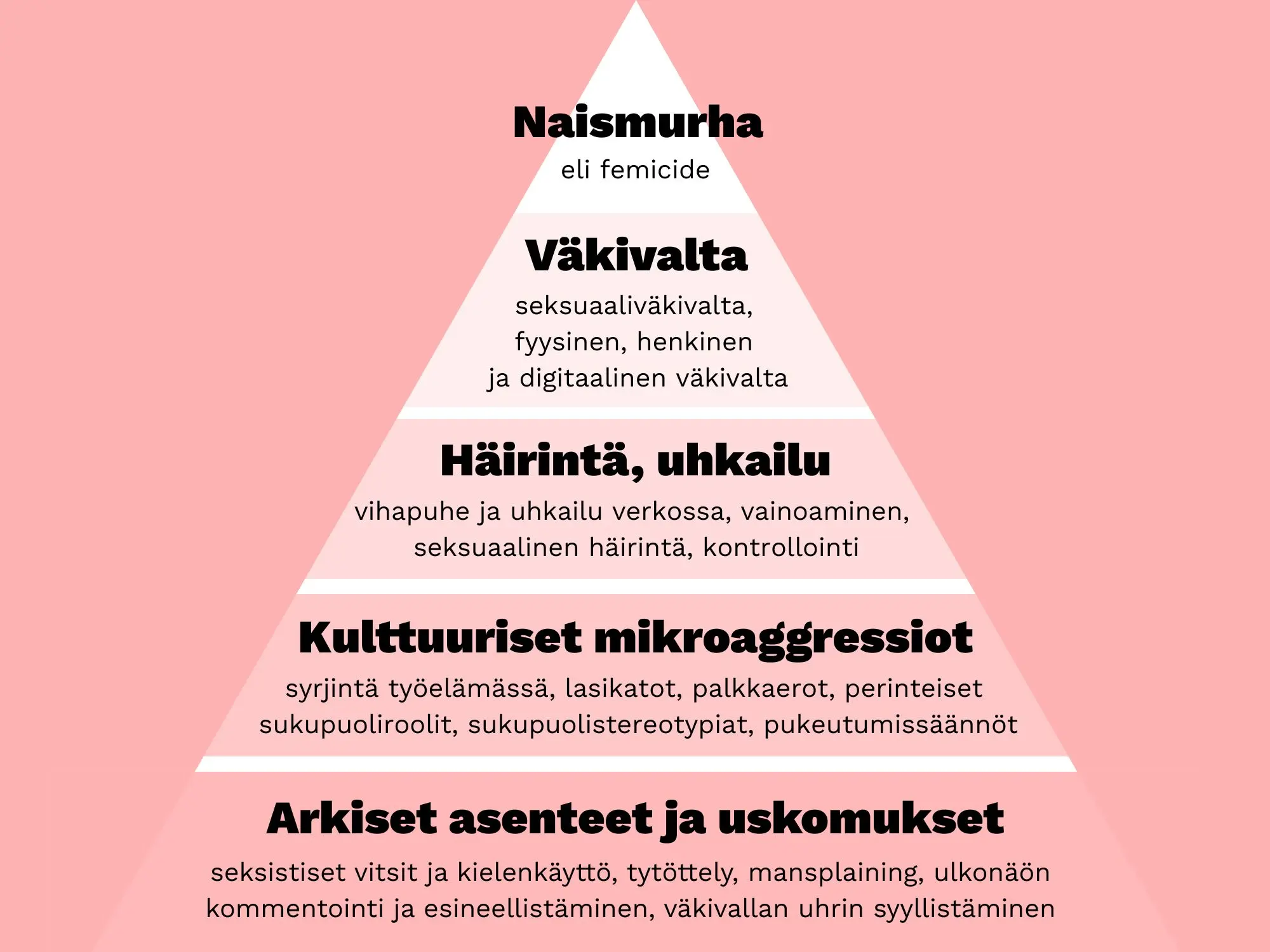 Naisviha alkaa arkisista asenteista. Naisten tytöttelystä työpaikallaan, ulkonäön kommentoinnista, väkivaltaa kokeneiden naisuhrien syyllistämisestä, ammattitaidon vähättelystä sukupuolen perusteella.